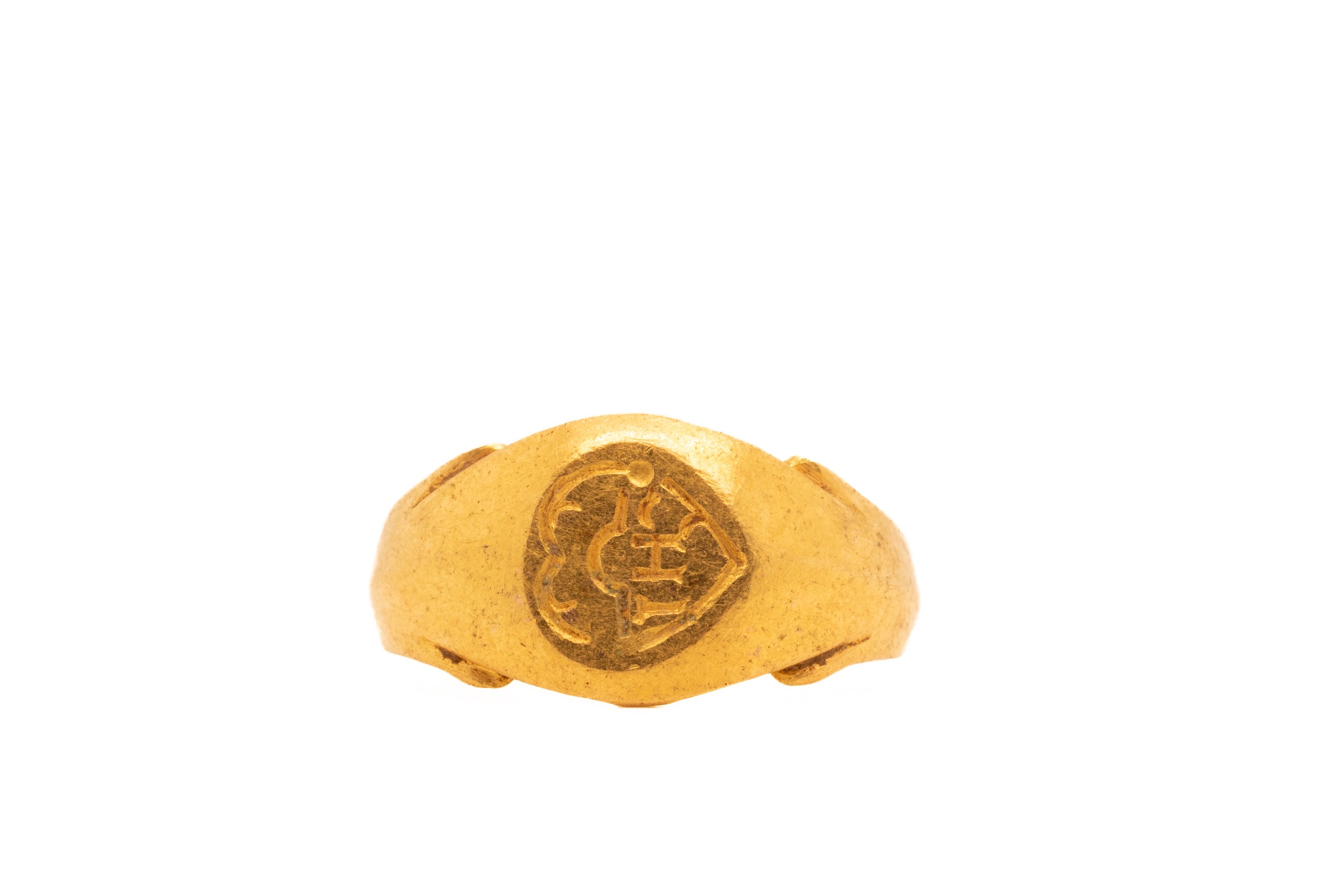 A Byzantine Gold Signet Ring with an Engraved...