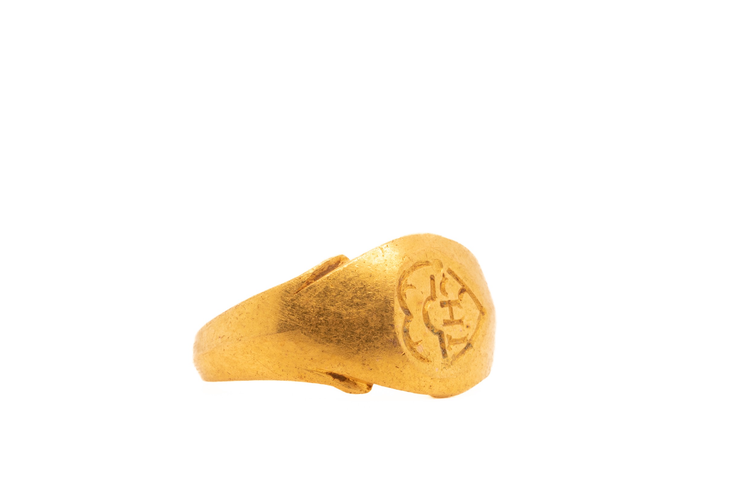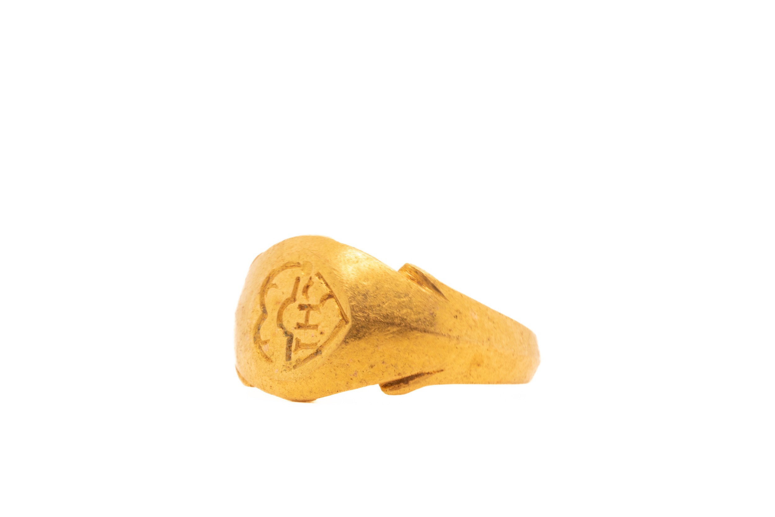 A Byzantine Gold Signet Ring with an Engraved Inscription.