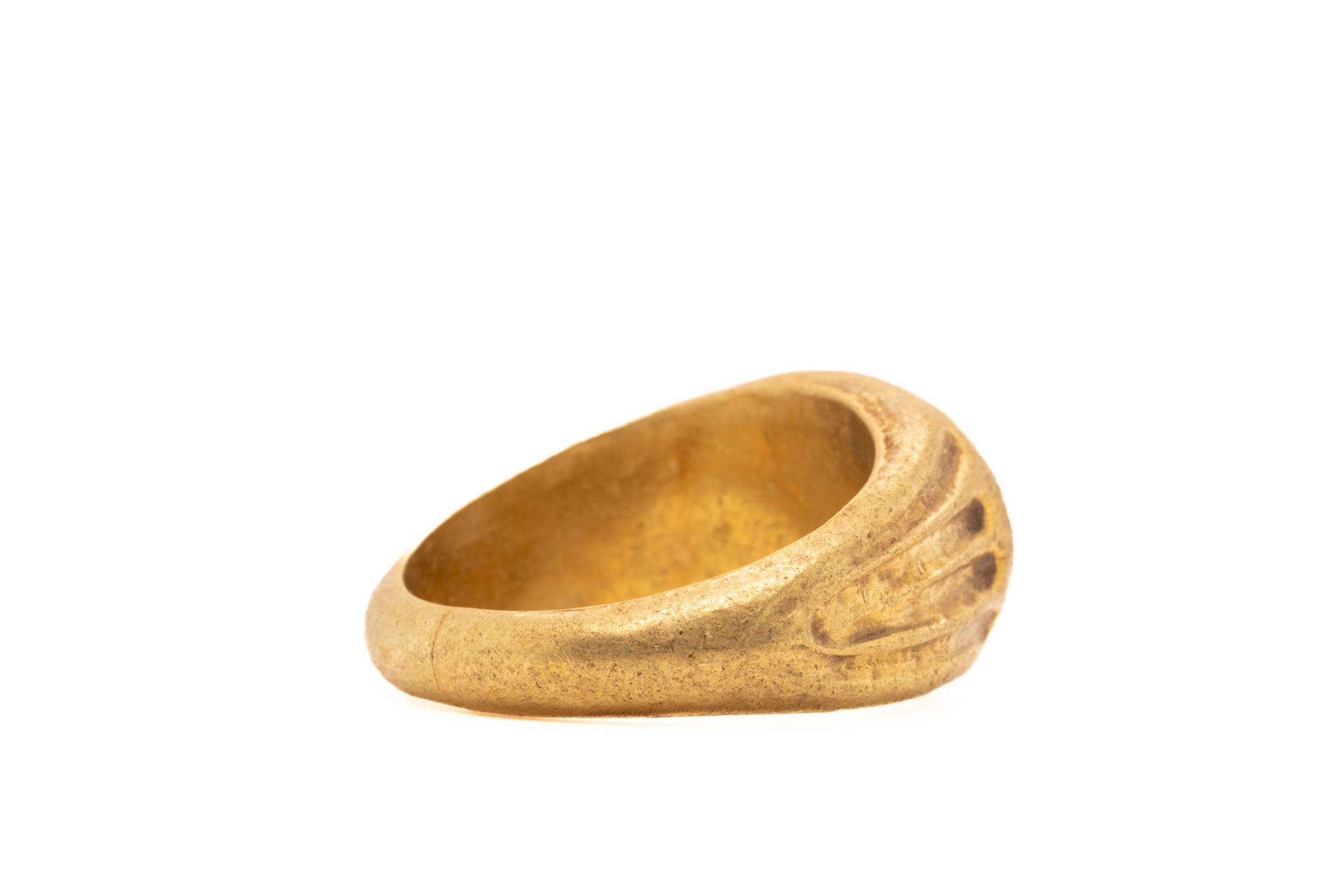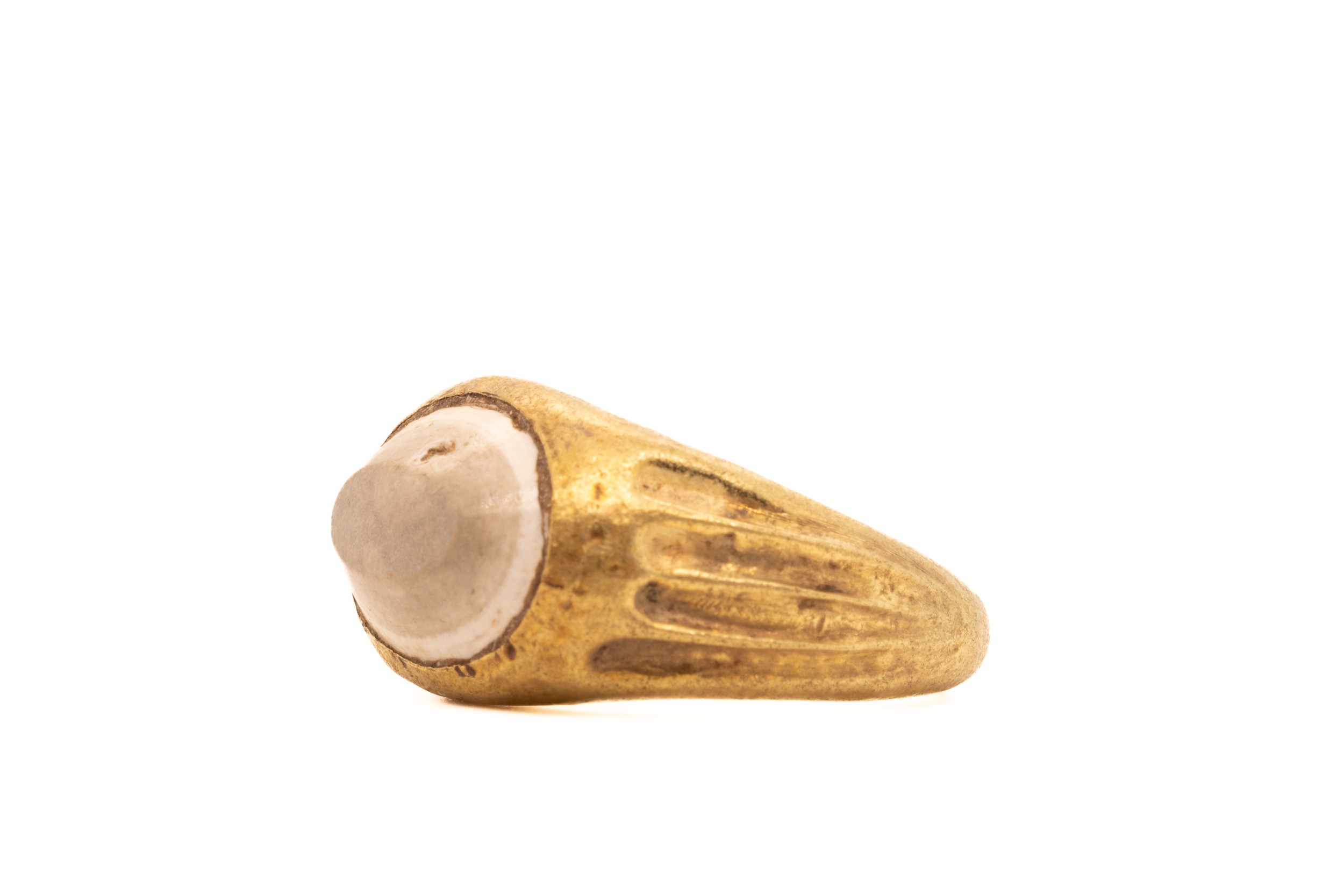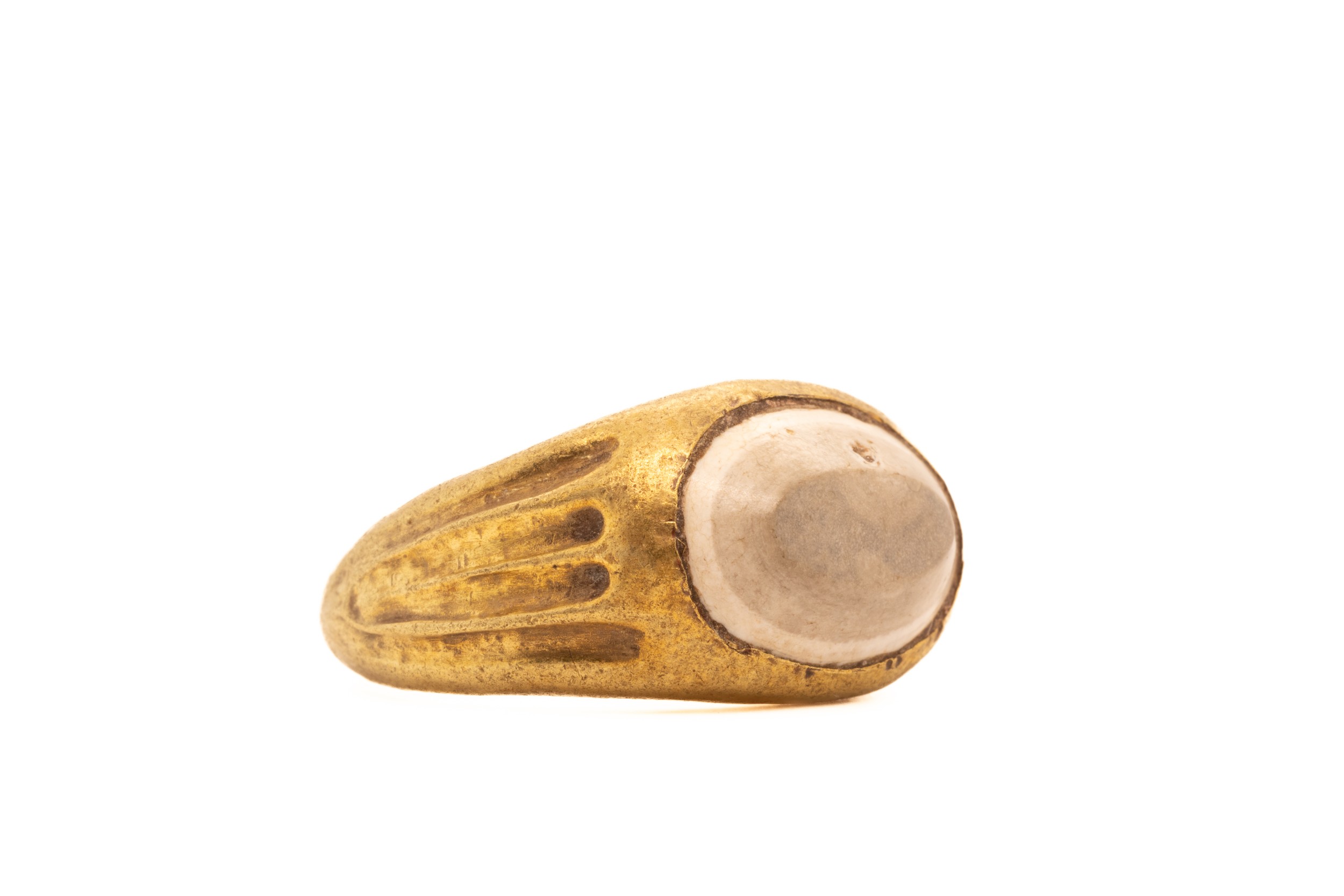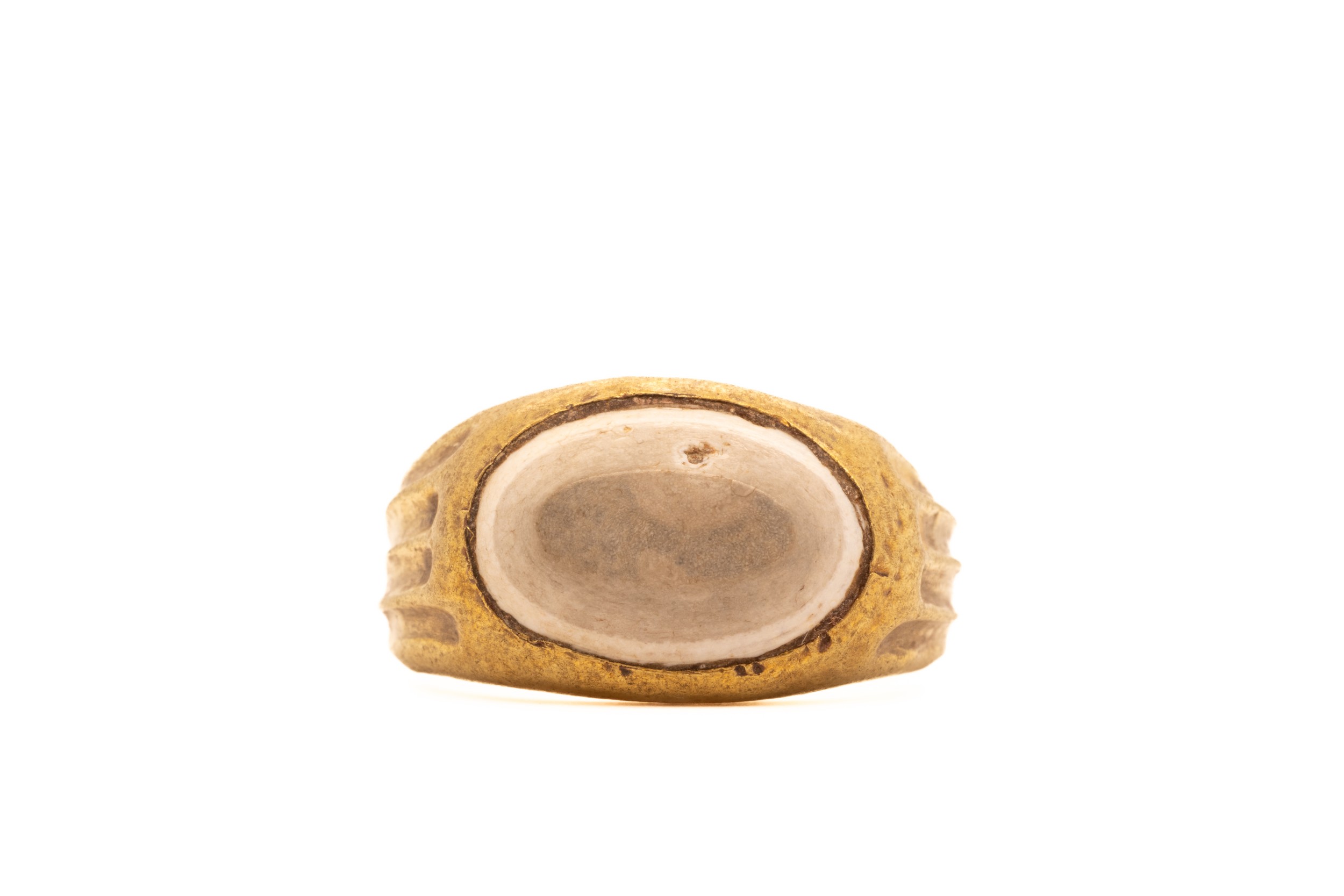A Late Roman Hollow Gold Ring with a Agate Cabochon.